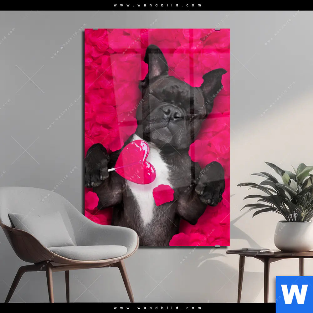 Acrylglasbild | Romantik mit süßen Hunden | Hochformat