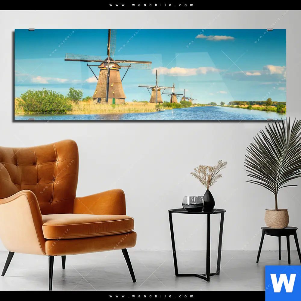 Acrylglasbild | Romantik zwischen Windmühlen | Panorama