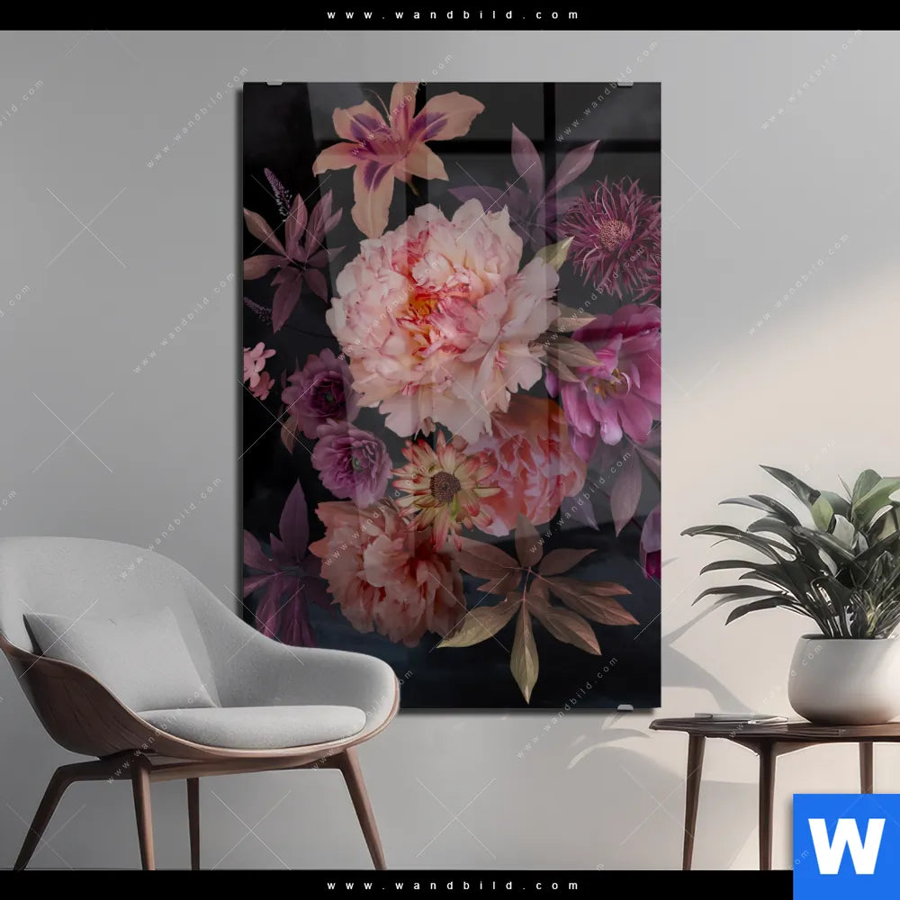 Acrylglasbild | Romantische Blumenillustration | Hochformat