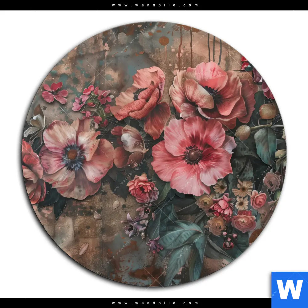Acrylglasbild | Romantische Vintageblumen | Rund