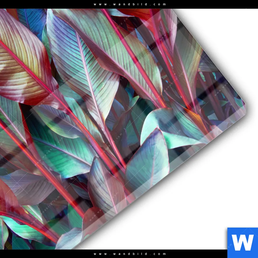 Acrylglasbild | Rote und smaragdgrüne Blätter | Quadrat