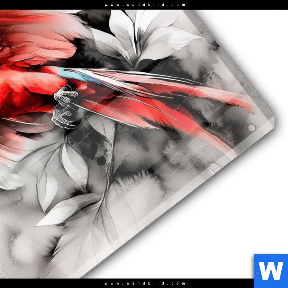 Acrylglasbild | Roter Papagei im Flug | Querformat