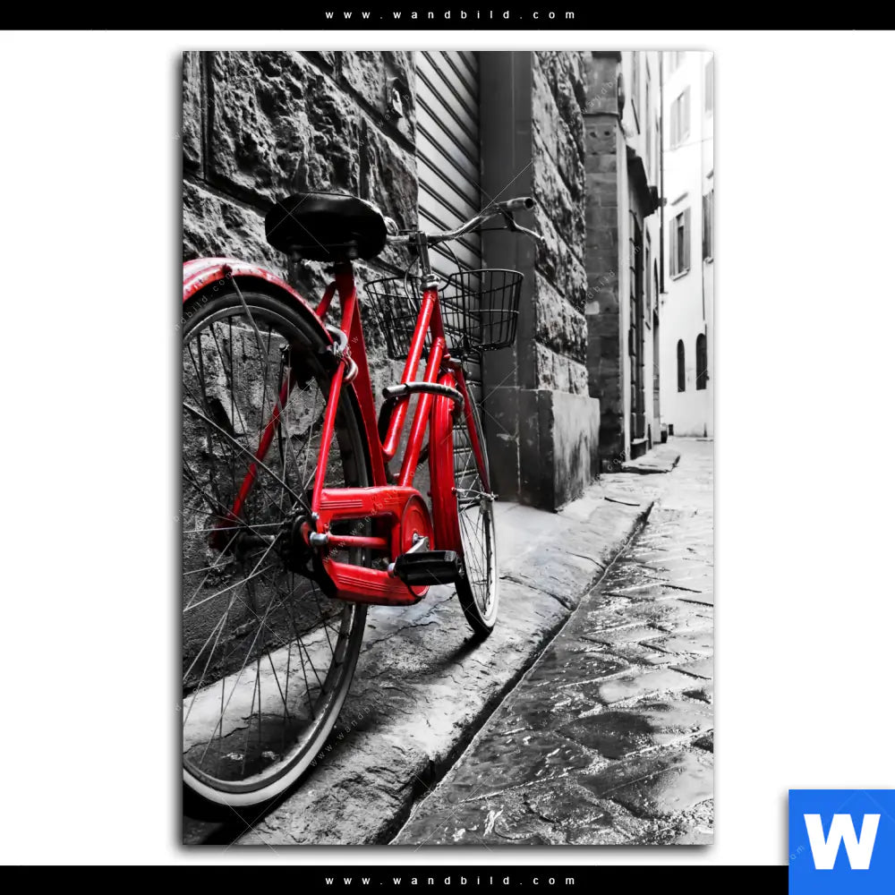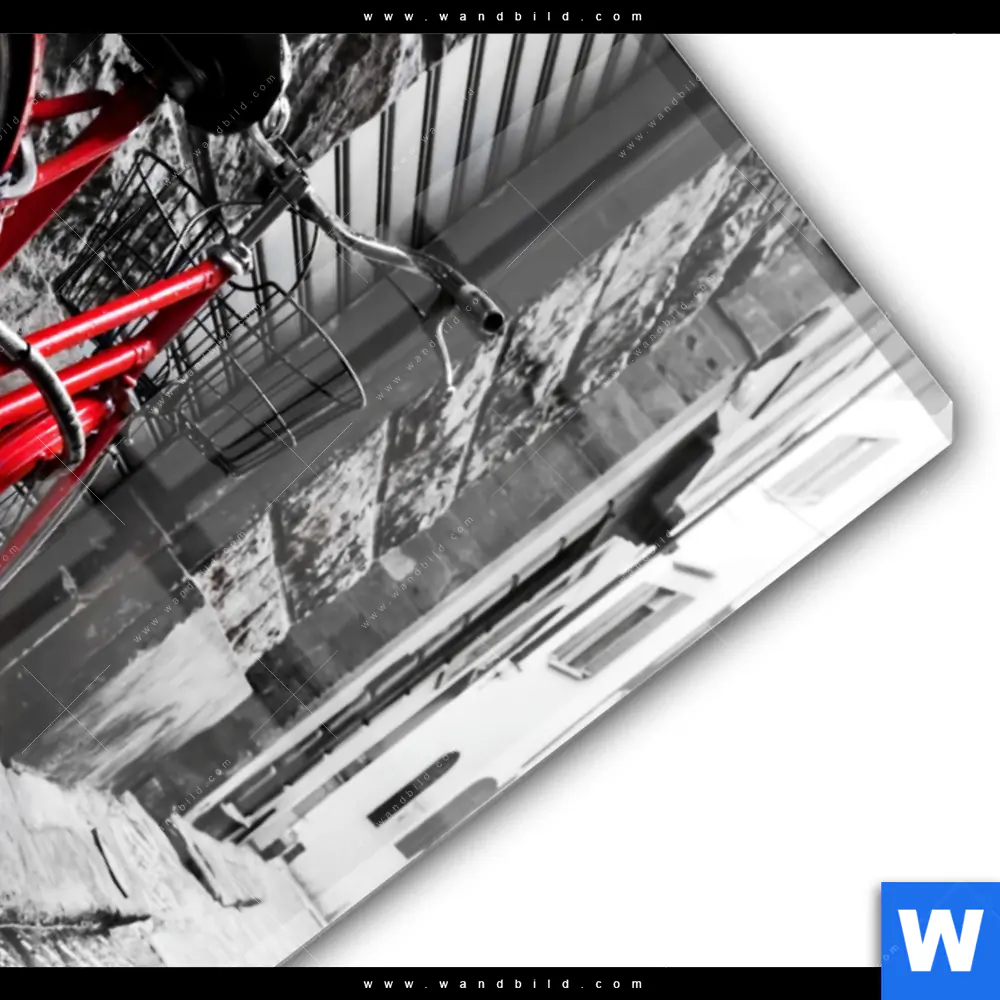 Acrylglasbild | Rotes Fahrrad in Gasse | Hochformat