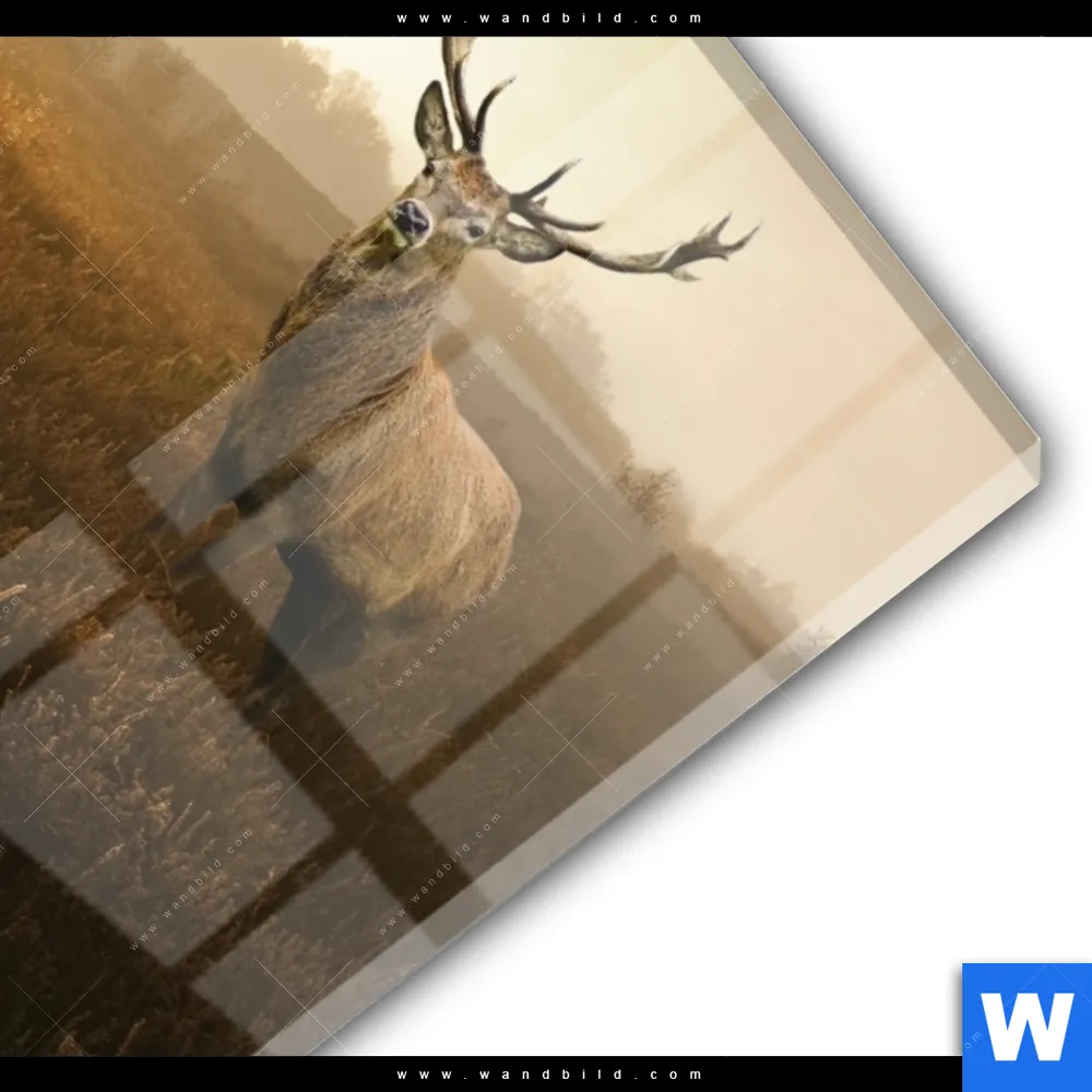 Acrylglasbild | Rothirsch im Nebel | Hochformat
