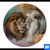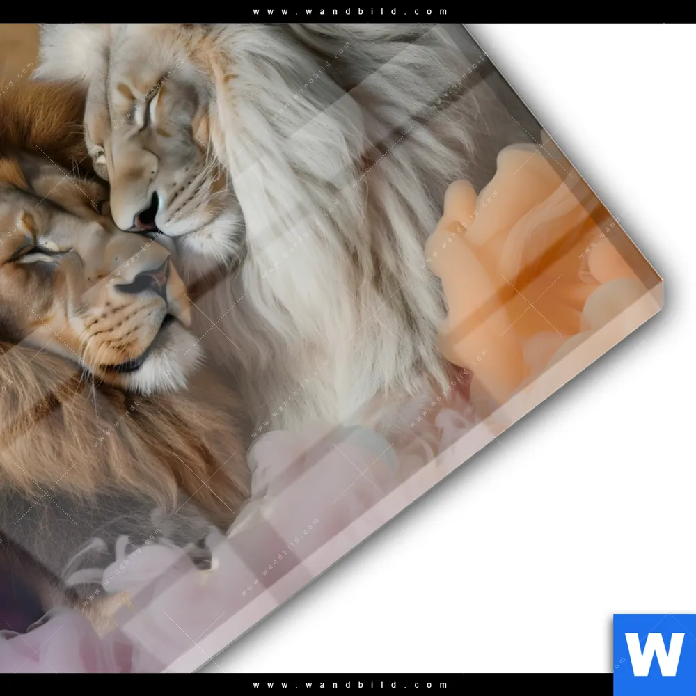 Acrylglasbild | Sanfte Löwenmomente in buntem Nebel | Rund