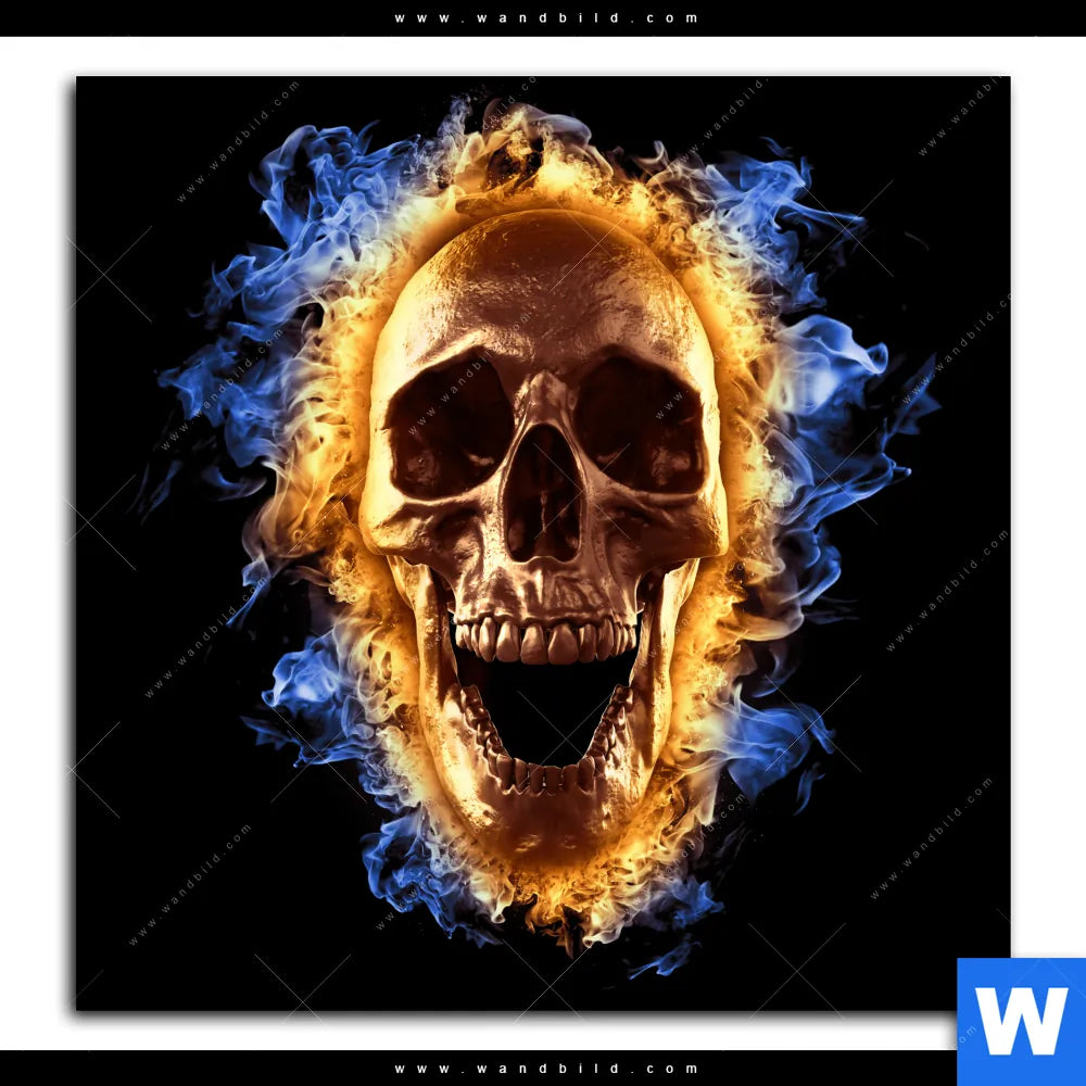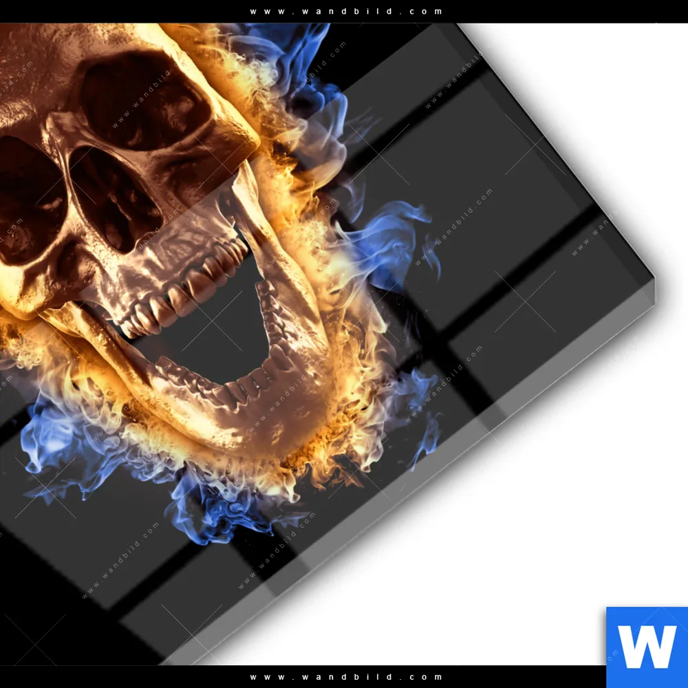 Acrylglasbild | Schädel in Flammen | Quadrat