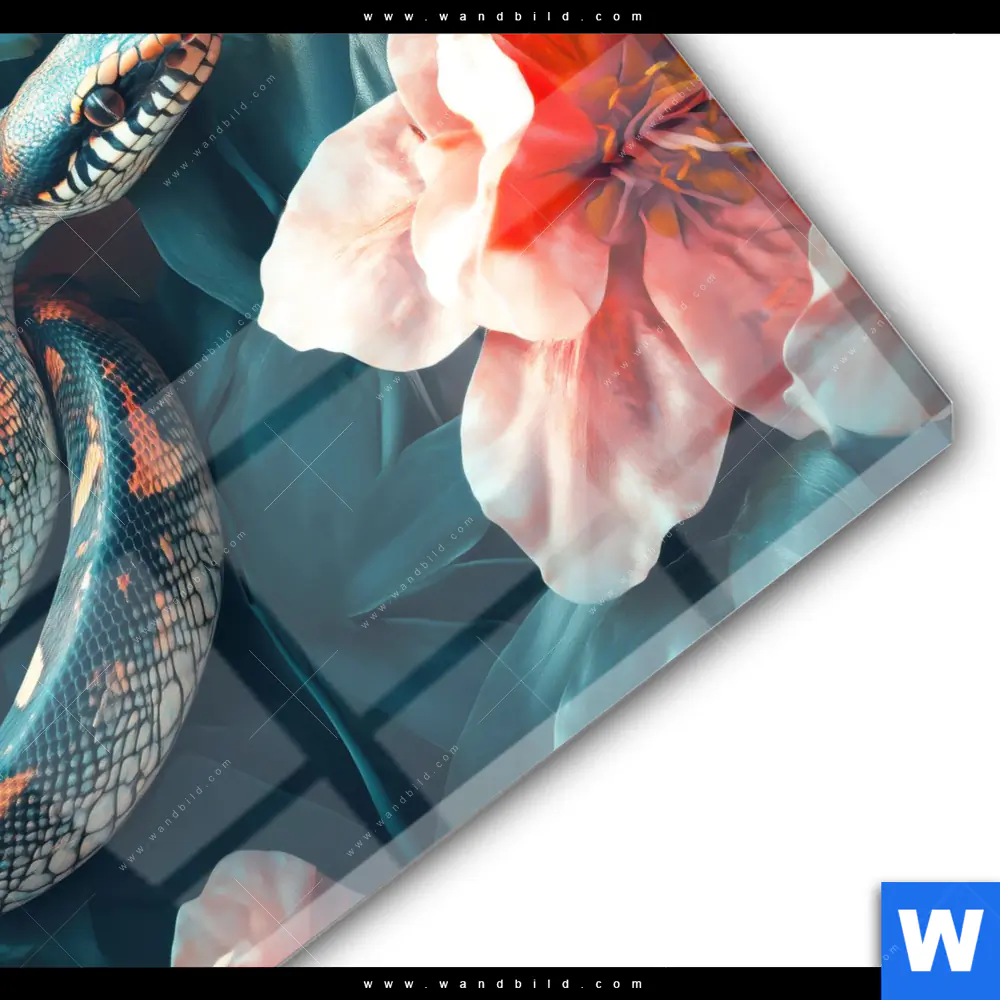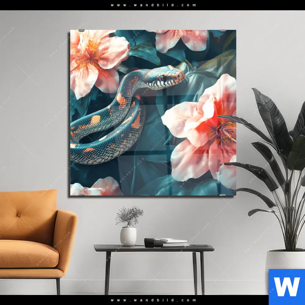Acrylglasbild | Schlange zwischen großen Blüten | Quadrat