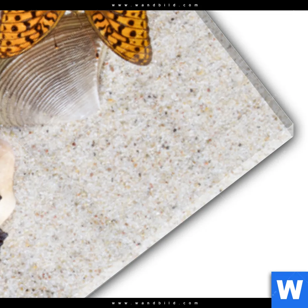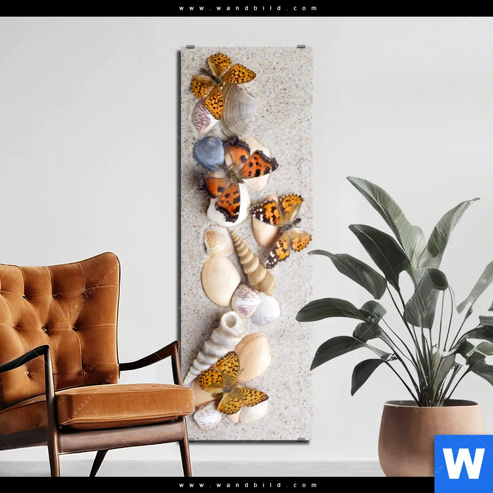 Acrylglasbild | Schmetterlinge & Muscheln im Sand | Schmal