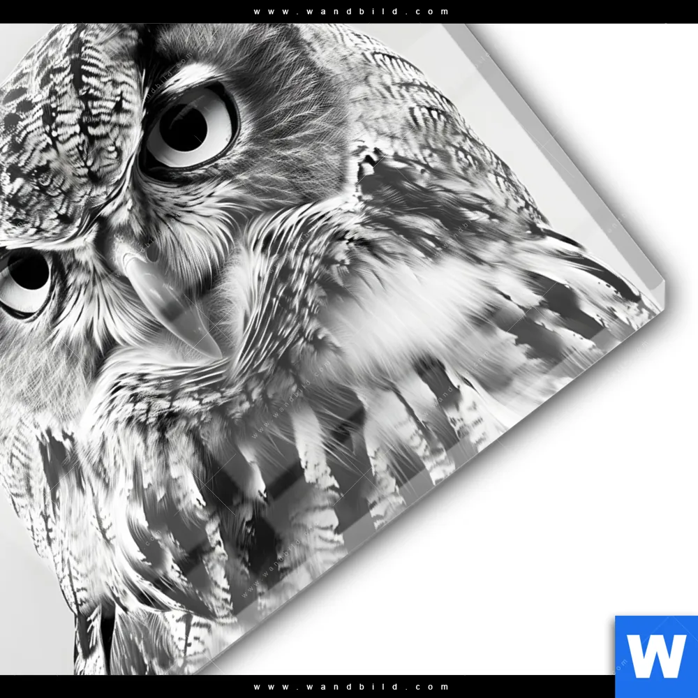 Acrylglasbild | Schwarz-Weiß Eulenportrait | Quadrat