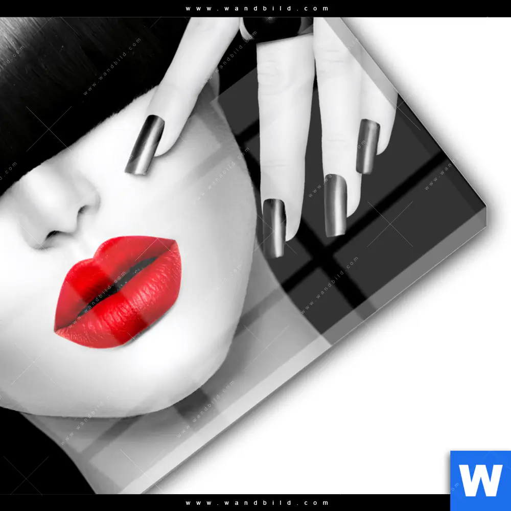 Acrylglasbild | Schwarze Eleganz & rote Lippen | Quadrat