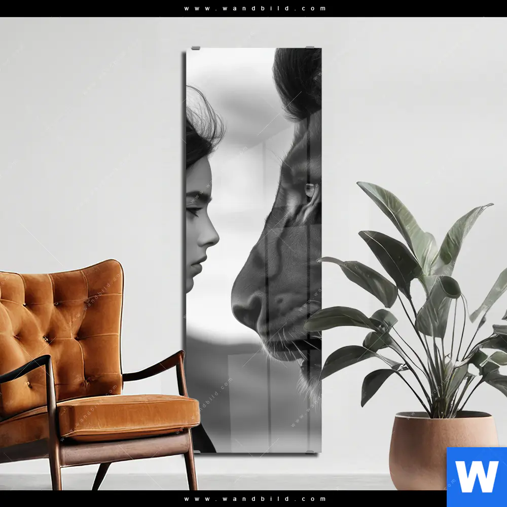 Acrylglasbild | Seelenblick - Löwe & Frau | Schmal