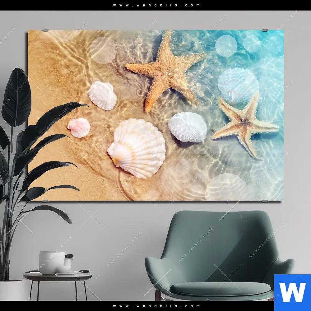 Acrylglasbild | Seesterne & Muscheln | Querformat