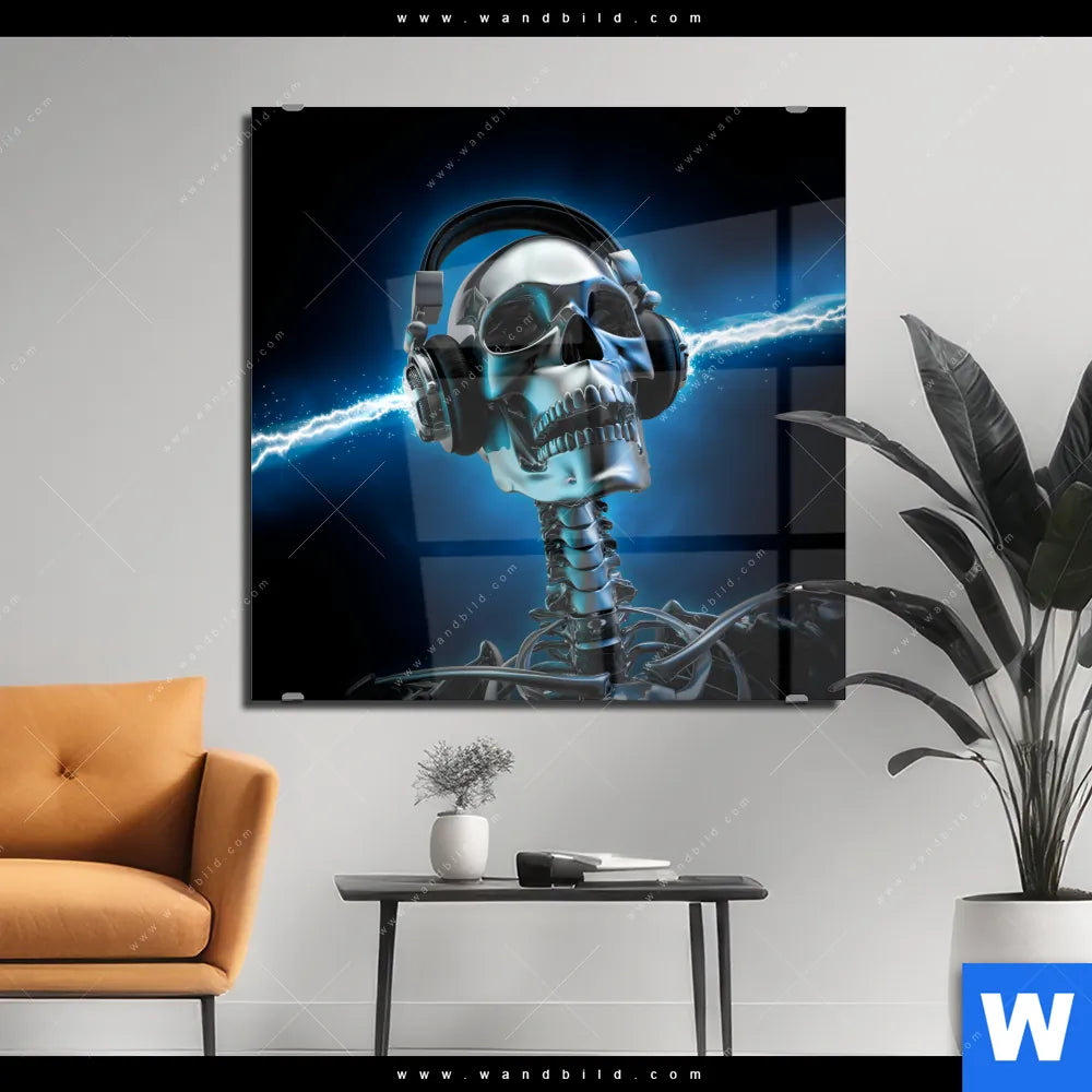 Acrylglasbild | Skelett & Kopfhörer | Quadrat