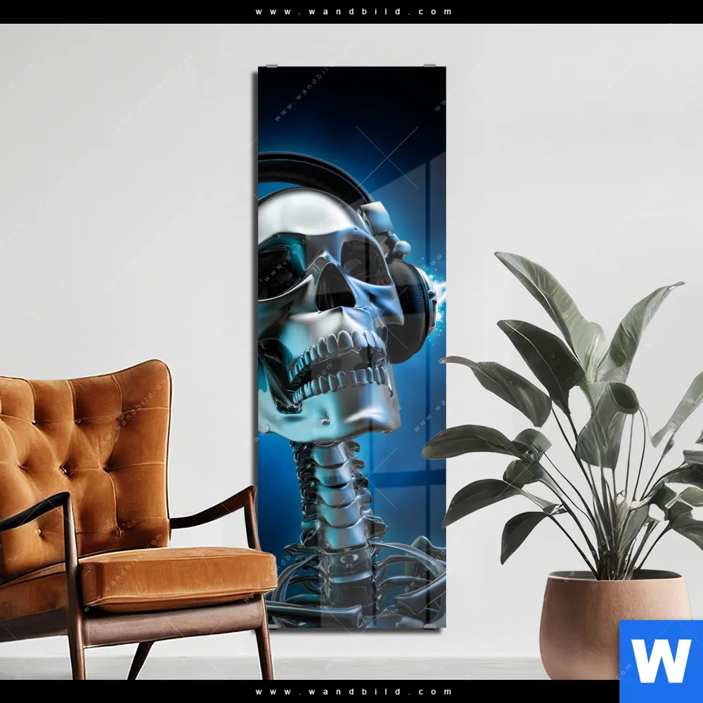 Acrylglasbild | Skelett & Kopfhörer | Schmal