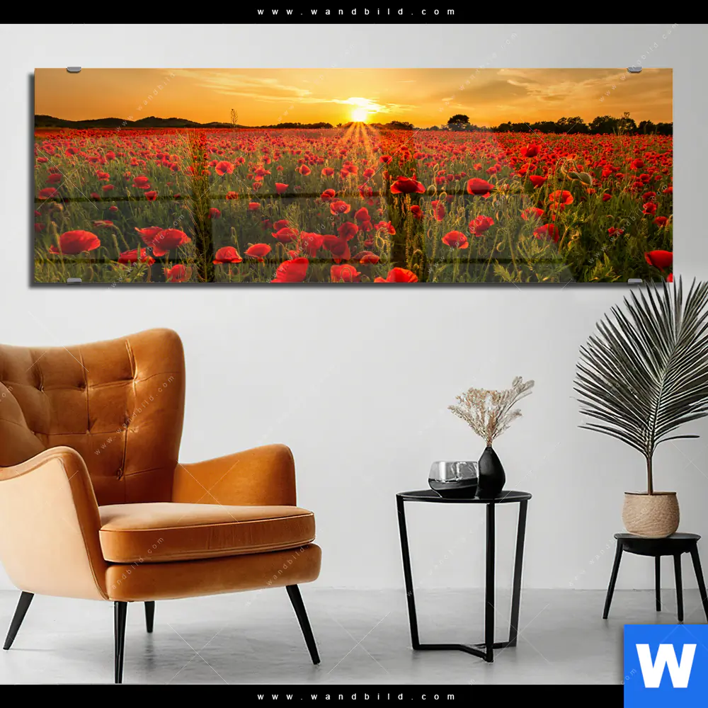 Acrylglasbild | Sommerlandschaft mit rotem Mohn | Panorama