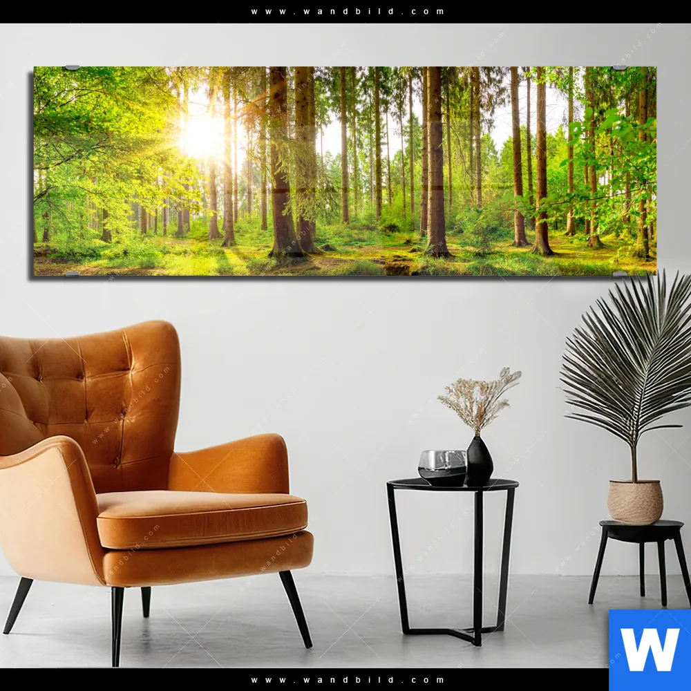Acrylglasbild | Sonne im grünen Wald | Panorama