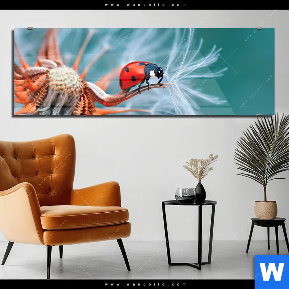 Acrylglasbild | Sonnenkäfer auf Pusteblume | Panorama