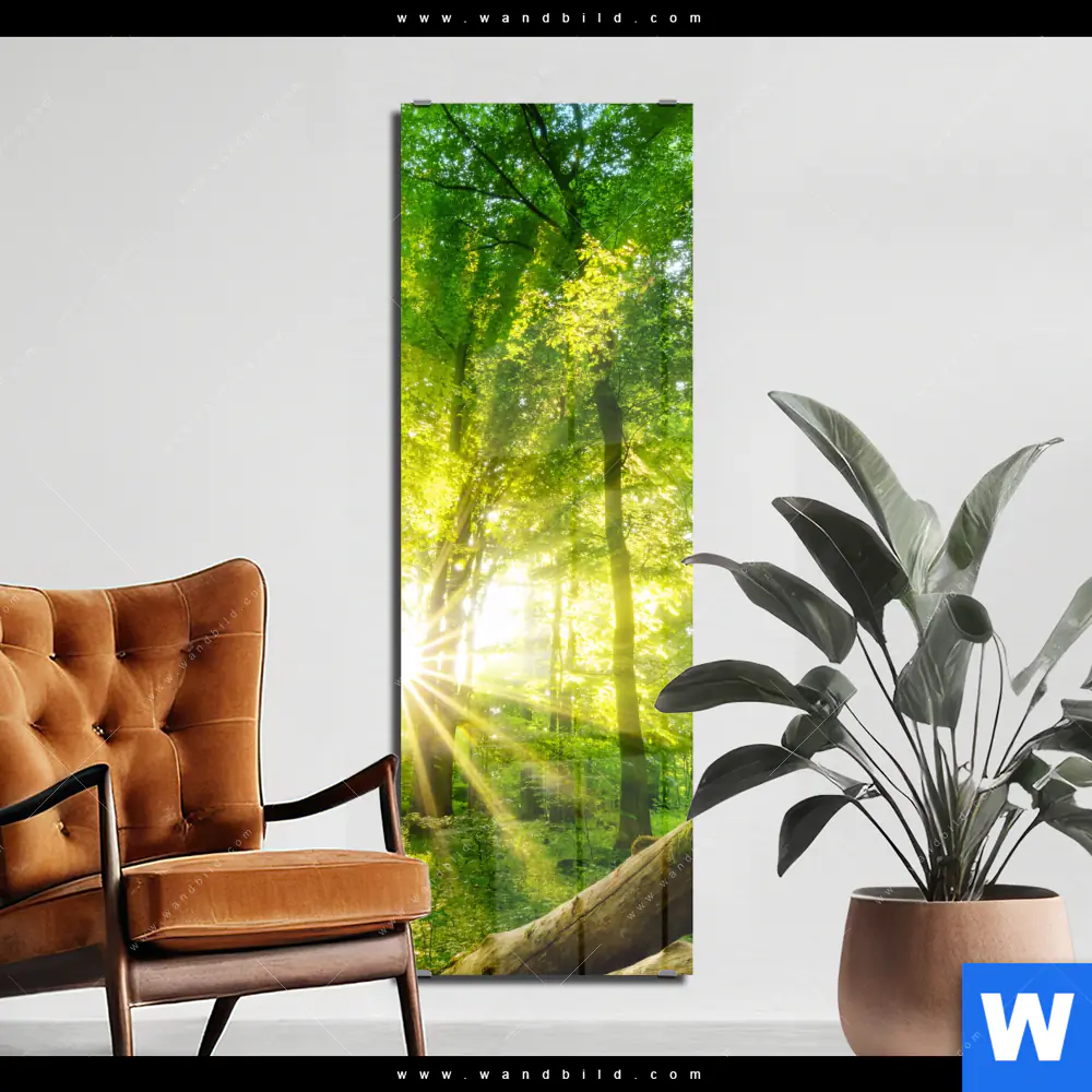 Acrylglasbild | Sonnenstrahlen im dichten Wald | Schmal