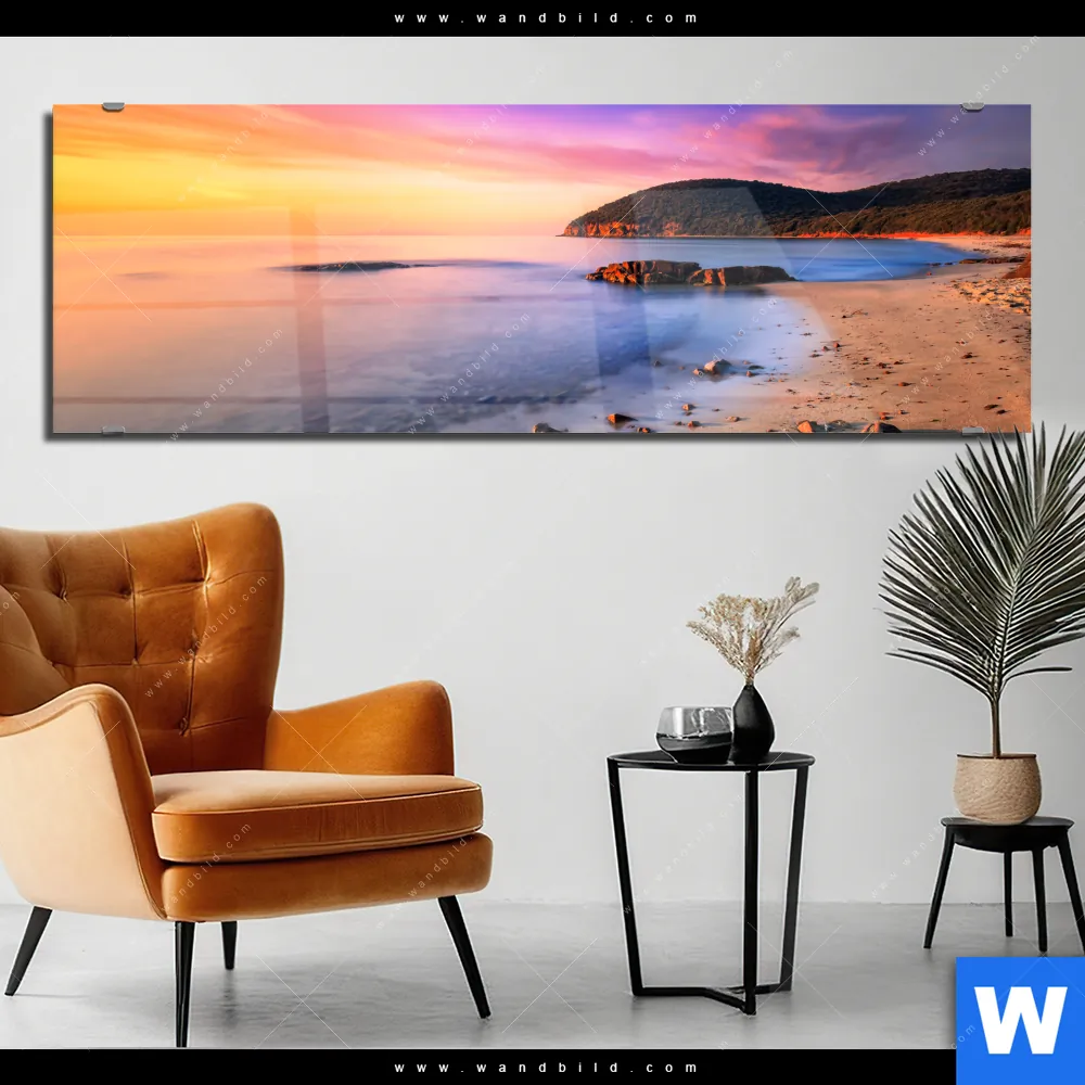 Acrylglasbild | Sonnenuntergang in Bucht | Panorama