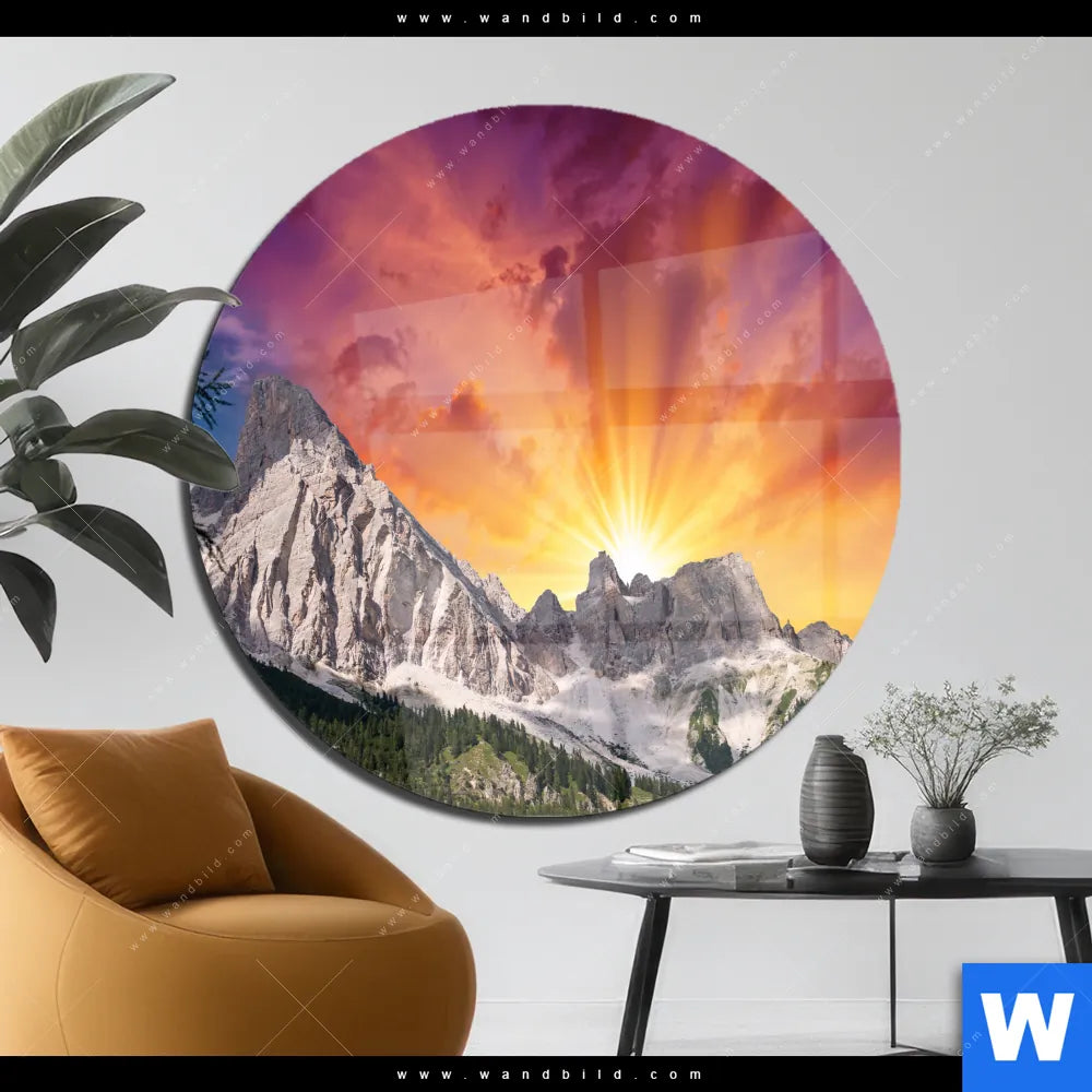 Acrylglasbild | Sonnenuntergang in den Bergen | Rund
