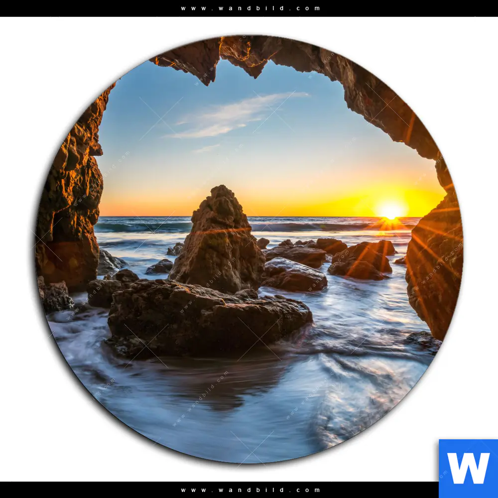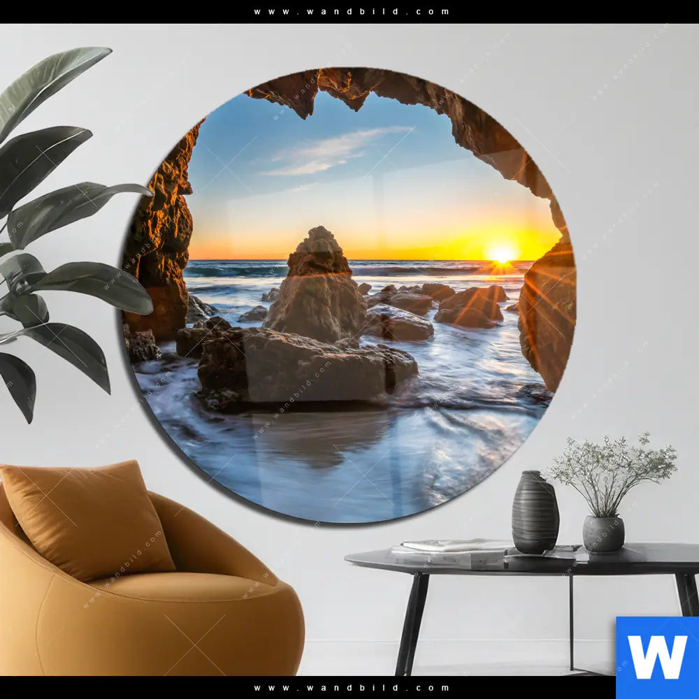 Acrylglasbild | Sonnenuntergang in Meeresgrotte | Rund