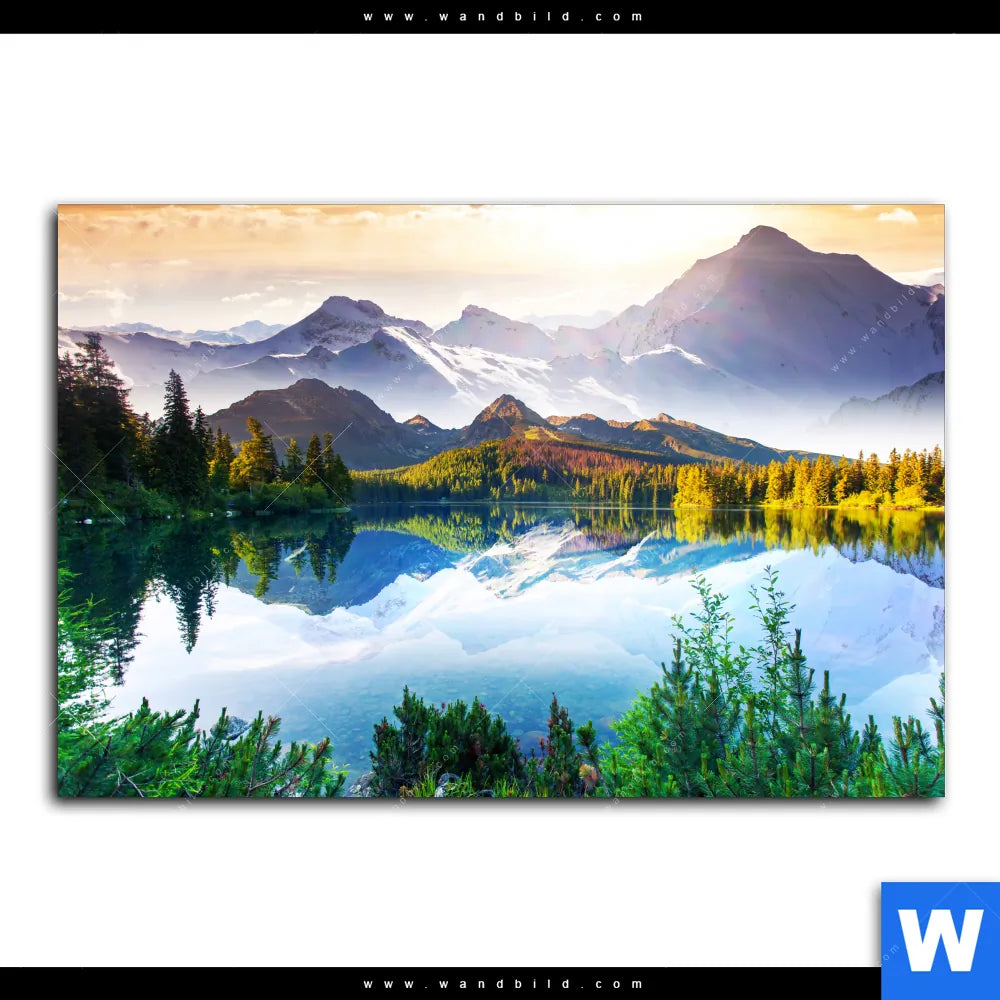 Acrylglasbild | Sonniger Tag am Bergsee | Querformat