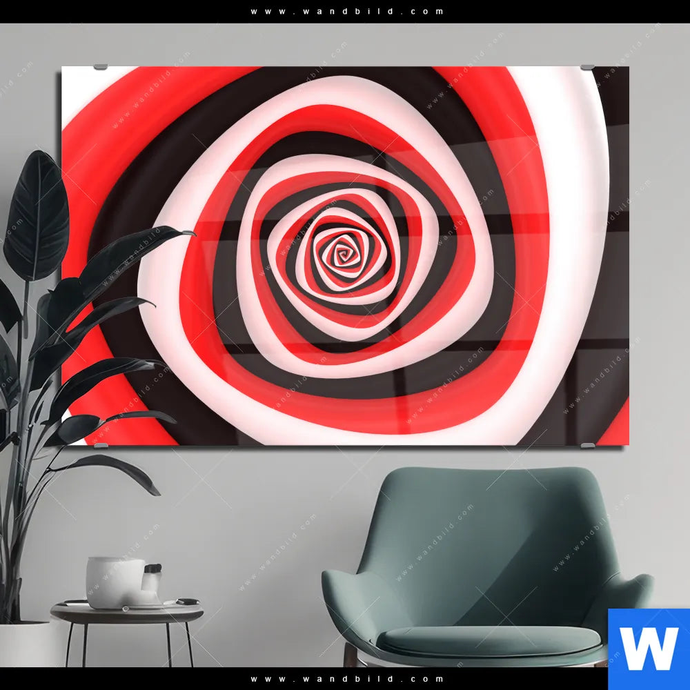 Acrylglasbild | Spirale in rot weiß schwarz | Querformat