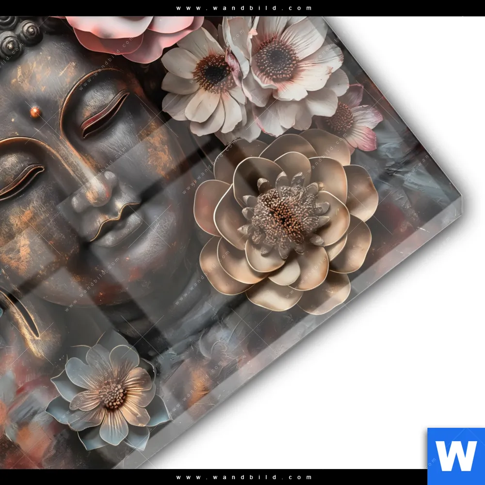 Buddha - Feng Shui, Blumen - Botanik Glasbild inkl. vormontiertem Rückrahmen