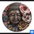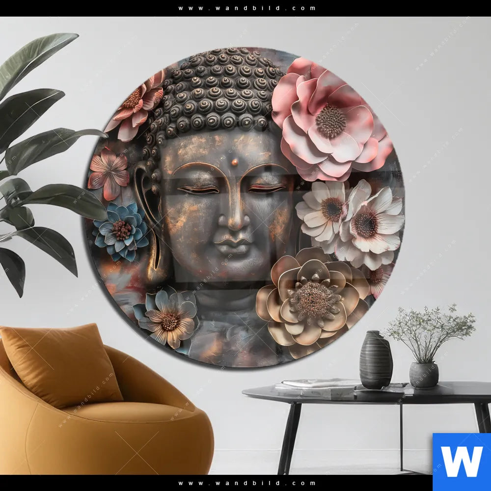 Acrylglasbild | Spiritueller Buddha und Blumen | Rund