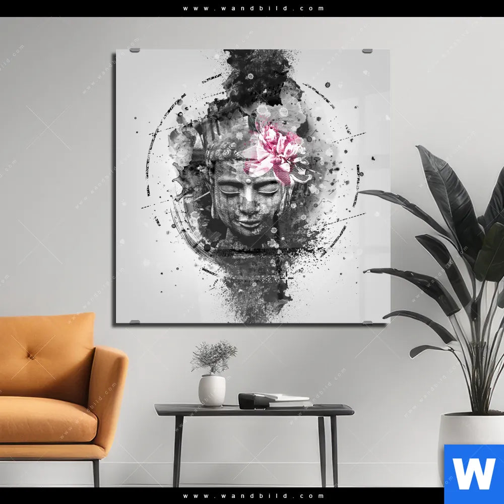 Buddha - Feng Shui, Blumen - Botanik Glasbild inkl. vormontiertem Rückrahmen
