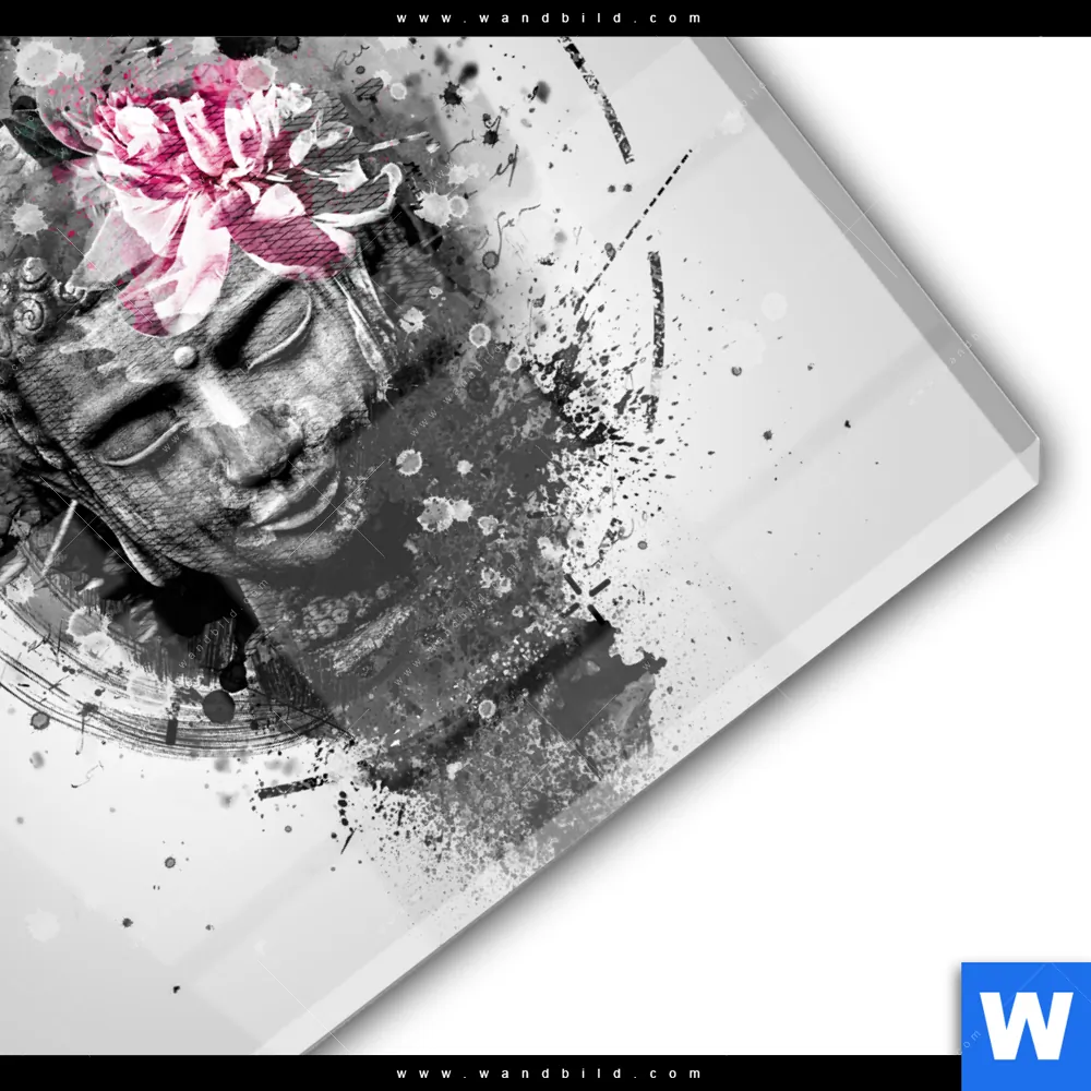 Buddha - Feng Shui, Blumen - Botanik Glasbild inkl. vormontiertem Rückrahmen
