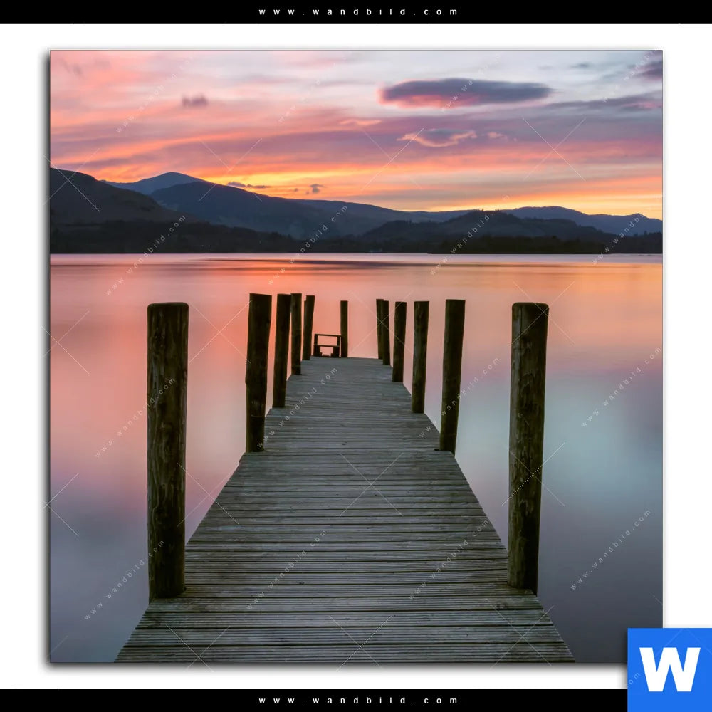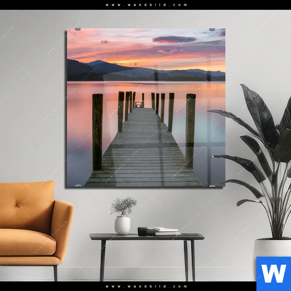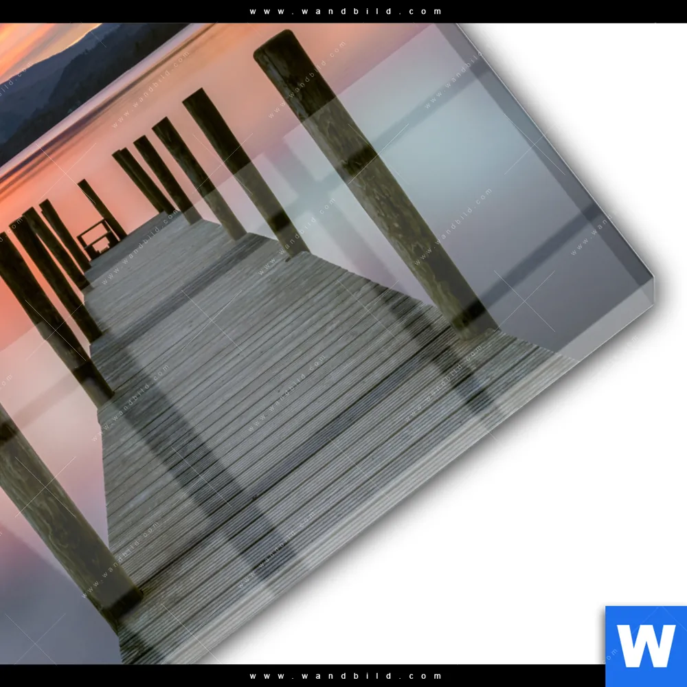 Acrylglasbild | Steg in den Sonnenuntergang | Quadrat