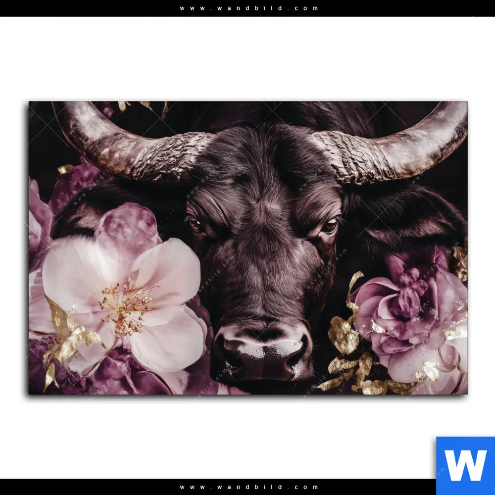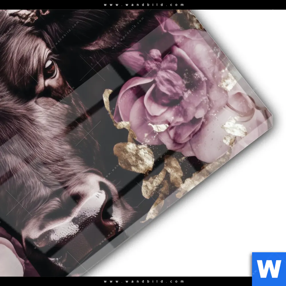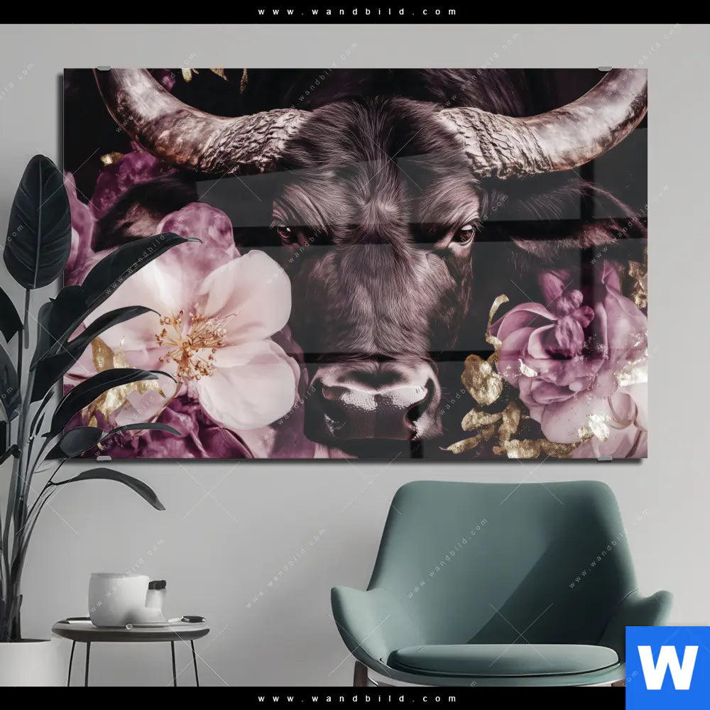 Acrylglasbild | Stier mit Blumen | Querformat