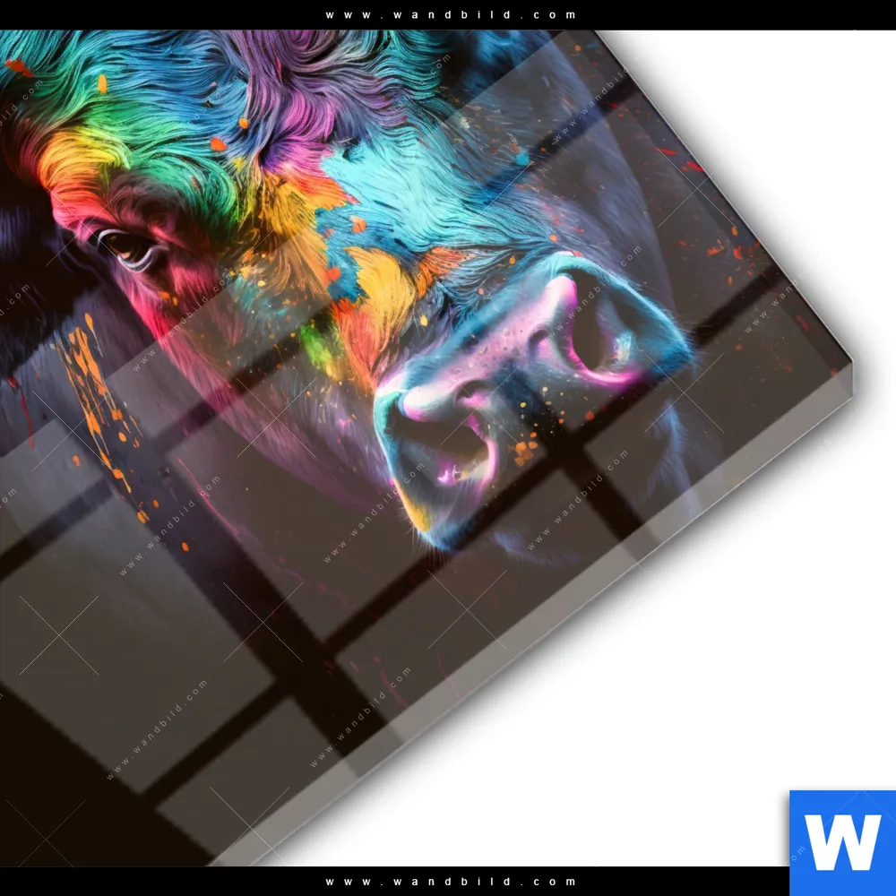 Acrylglasbild | Stier mit bunten Farben | Quadrat