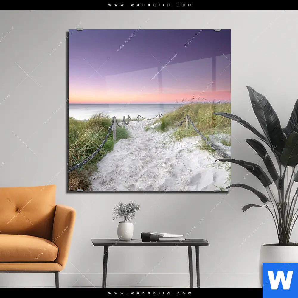 Acrylglasbild | Strandweg im Sonnenuntergang | Quadrat