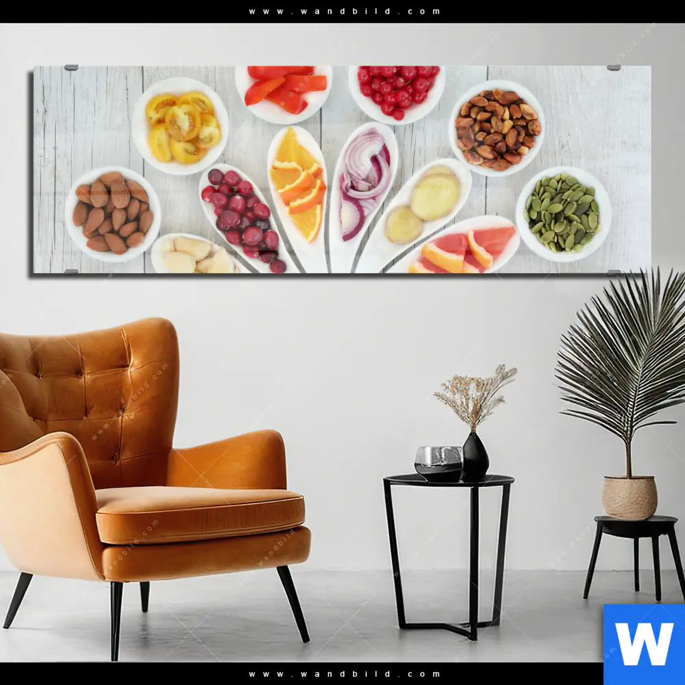 Acrylglasbild | Superfoods im Farbkreis | Panorama