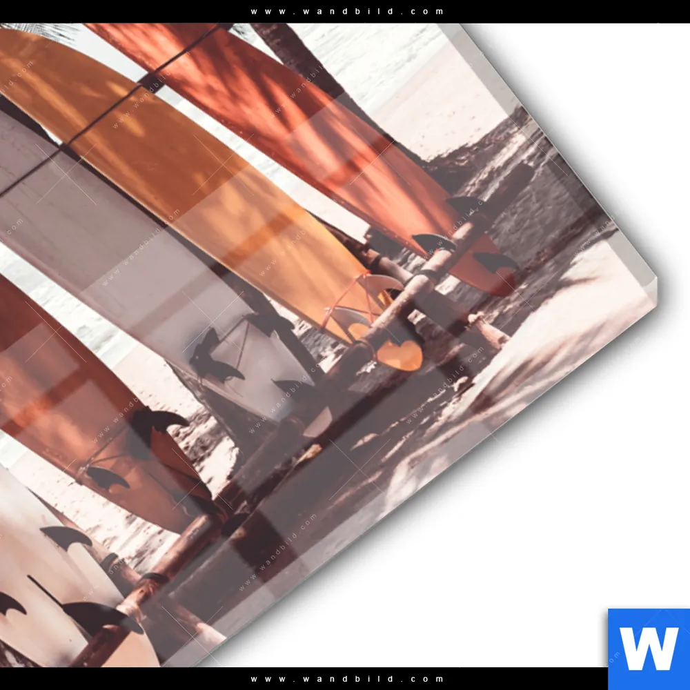 Acrylglasbild | Surfbretter und Palmen | Querformat