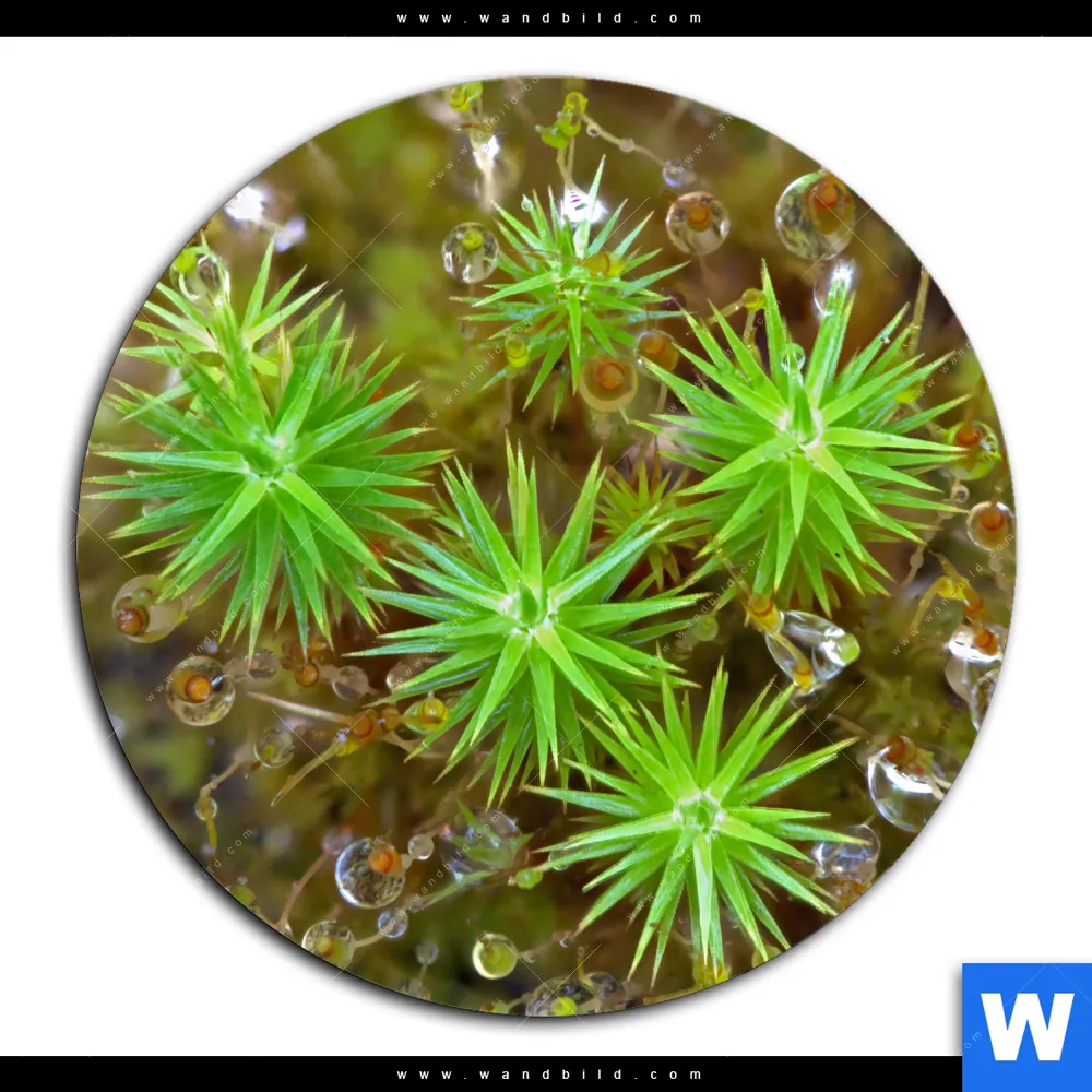 Acrylglasbild | Tautropfen auf Moos | Rund
