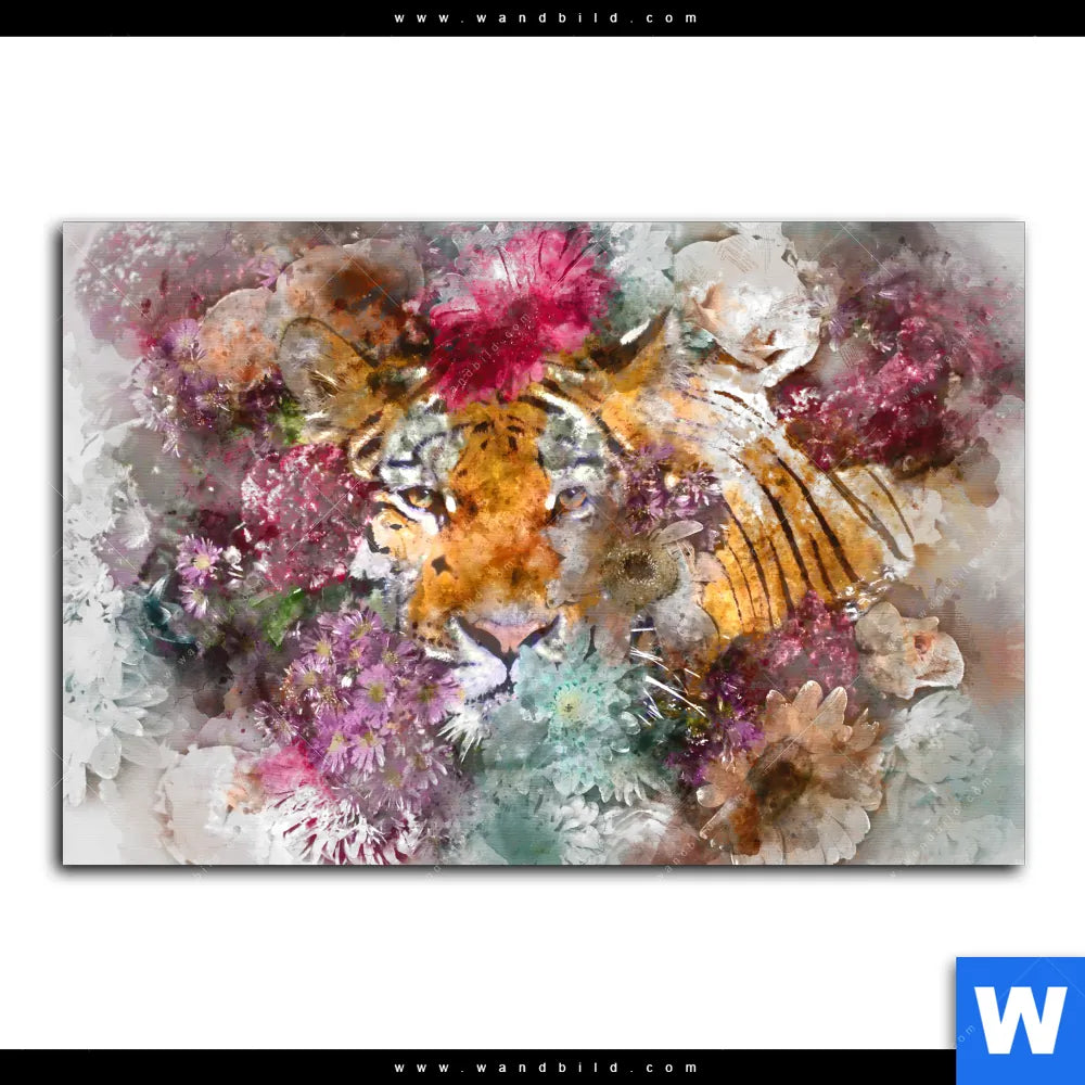 Acrylglasbild | Tiger & Blumen | Querformat