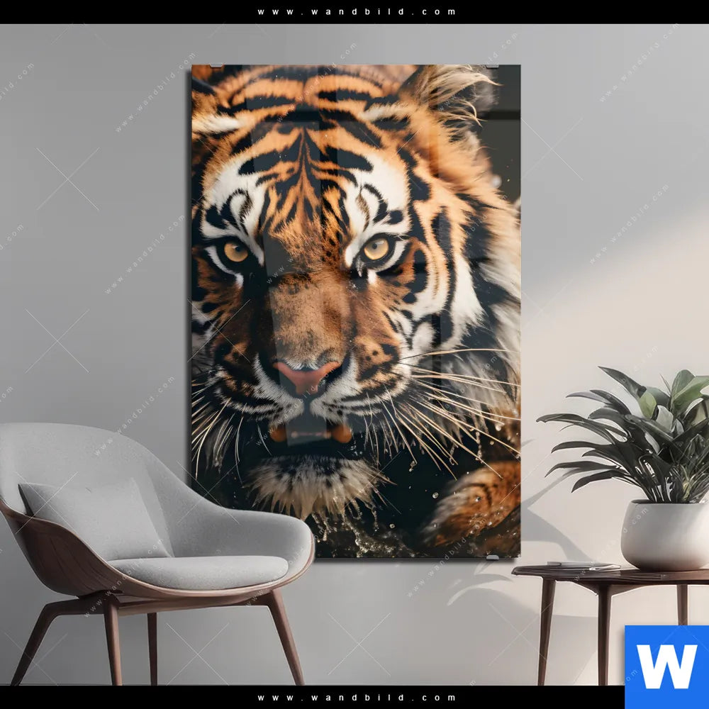 Acrylglasbild | Tiger im Wasser | Hochformat
