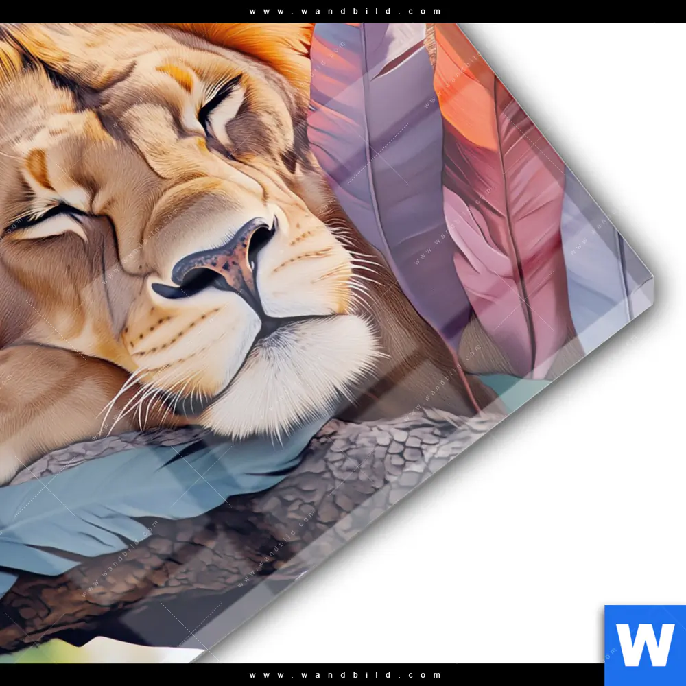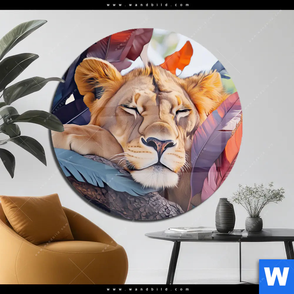 Acrylglasbild | Träumender Löwe im Baum | Rund