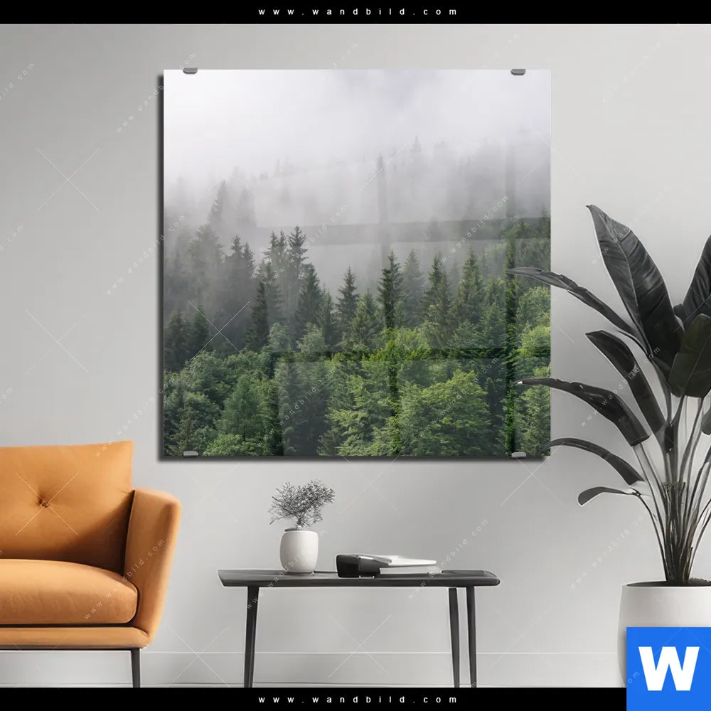 Acrylglasbild | Wald im Nebel | Quadrat