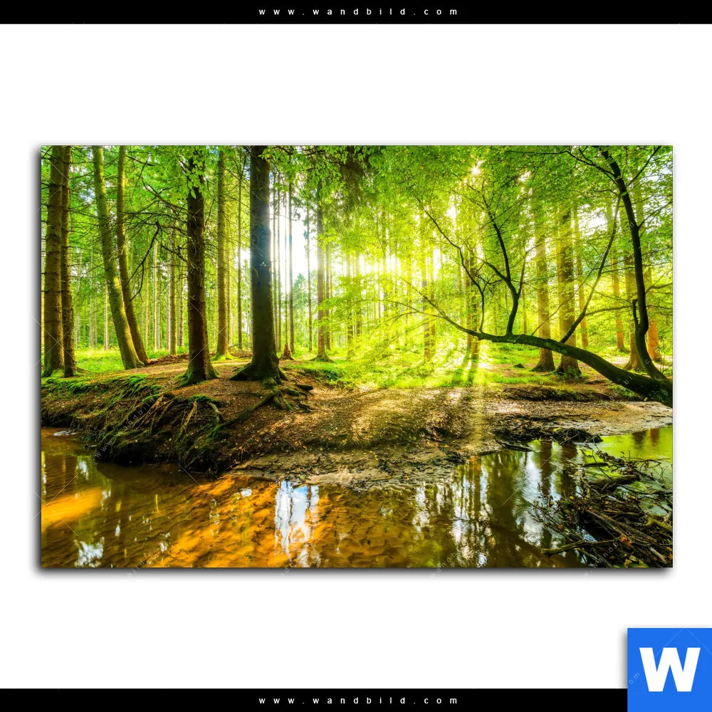Acrylglasbild | Wald mit Sonnenstrahlen | Querformat