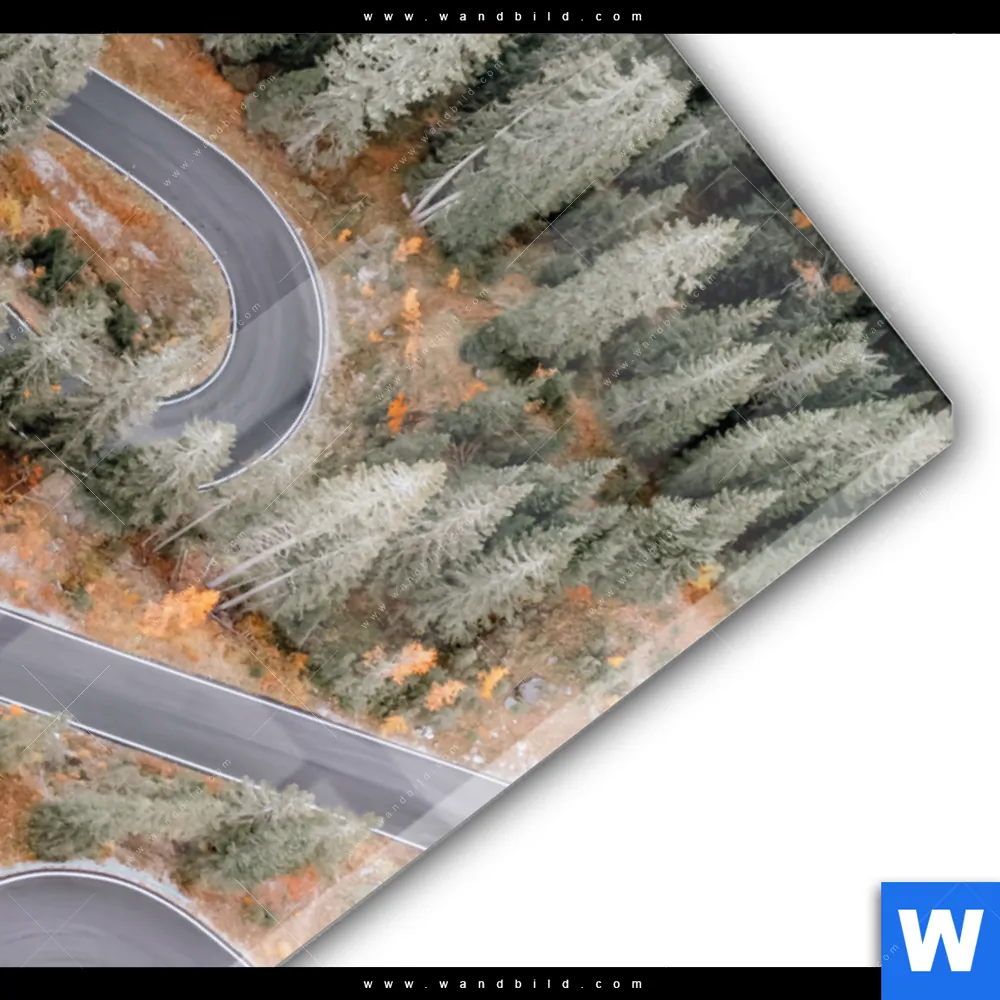 Acrylglasbild | Wald & Straße von oben | Hochformat