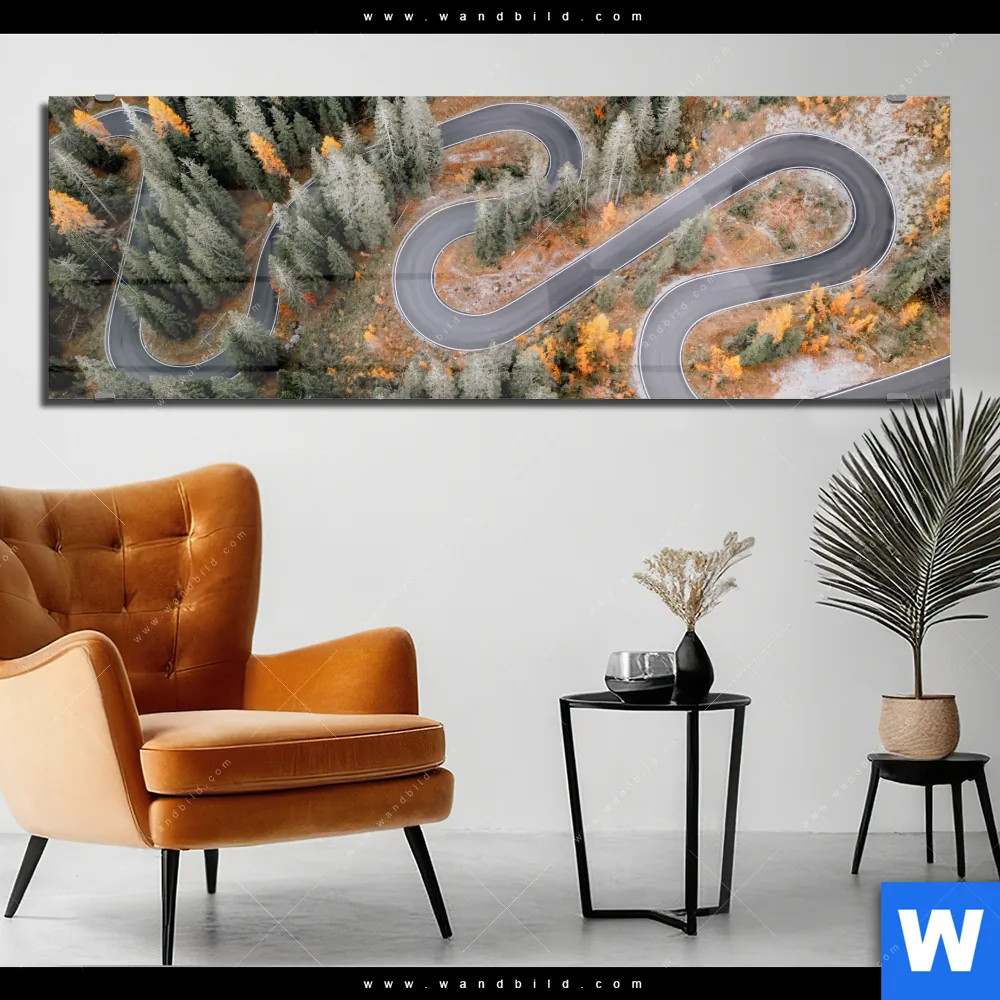 Acrylglasbild | Wald & Straße von oben | Panorama