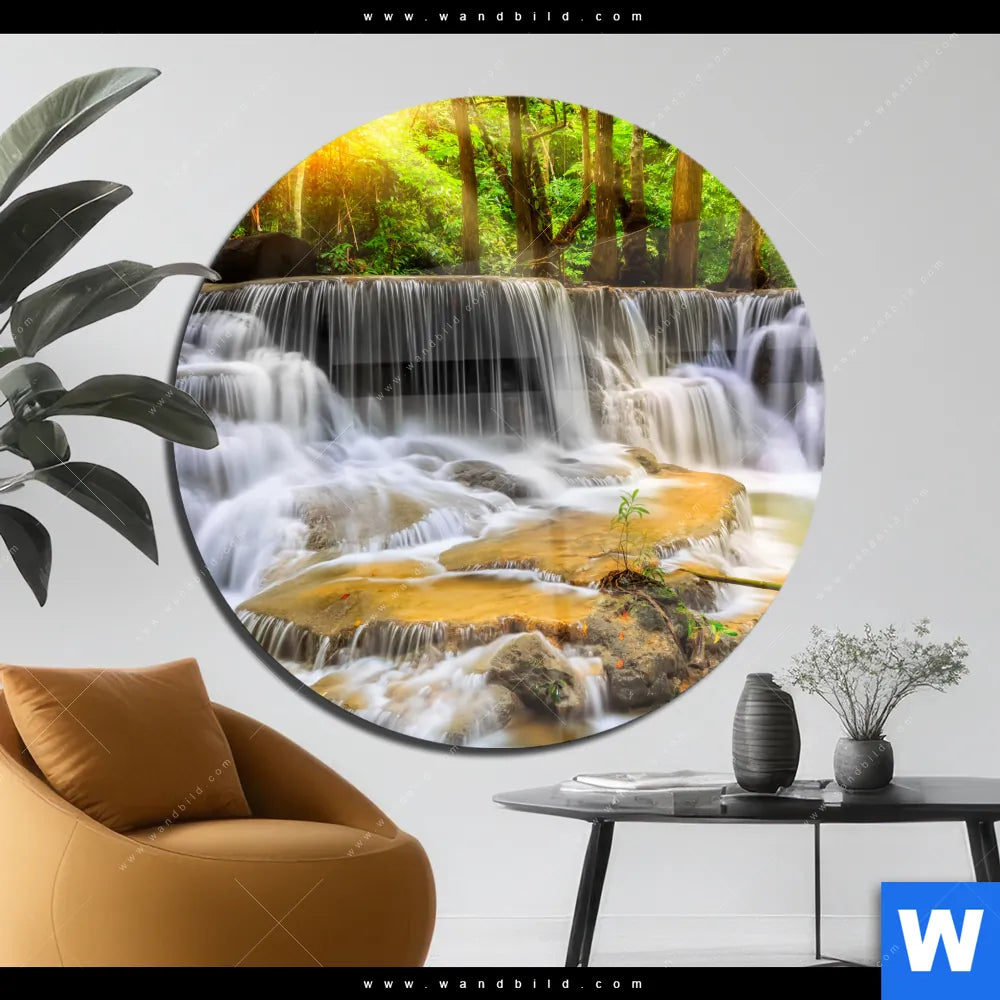 Acrylglasbild | Wald & Wasserfall No. 2 | Rund