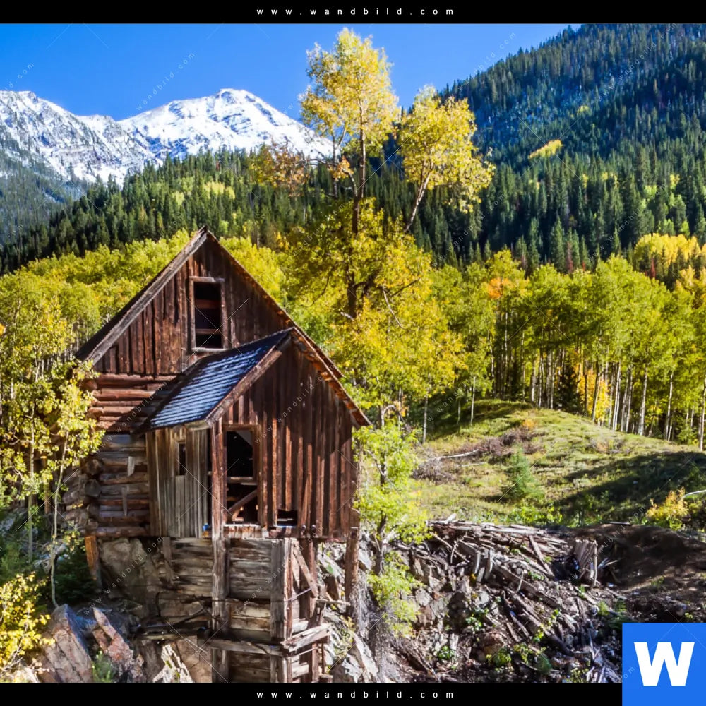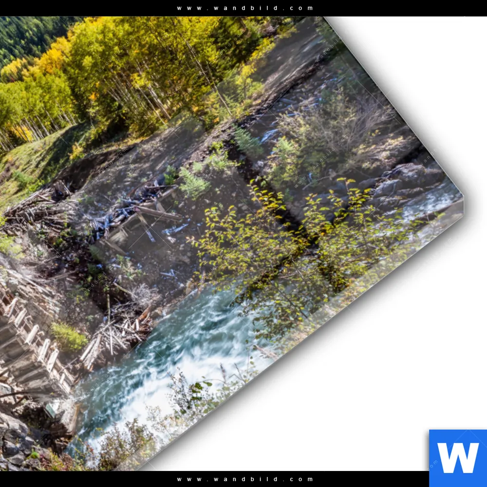 Acrylglasbild | Waldhütte am Fluss | Querformat