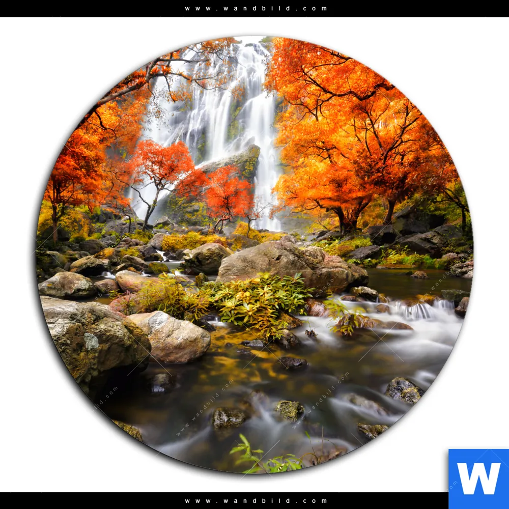 Acrylglasbild | Wasserfall in Herbstlandschaft | Rund