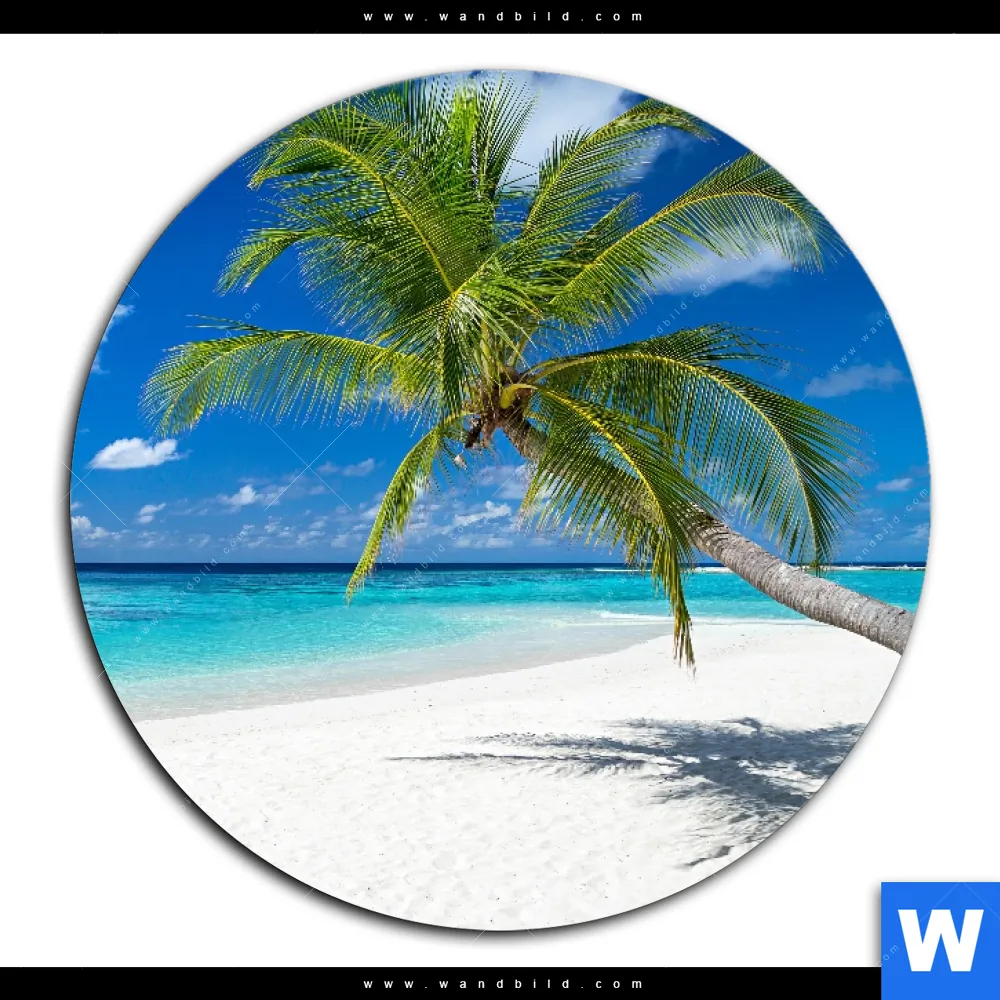 Acrylglasbild | Weißer Strand & Kokospalme | Rund
