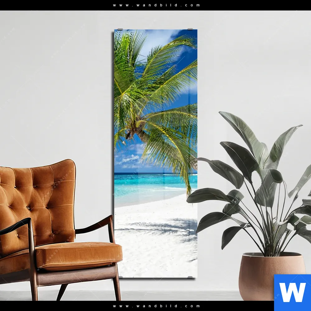 Acrylglasbild | Weißer Strand & Kokospalme | Schmal